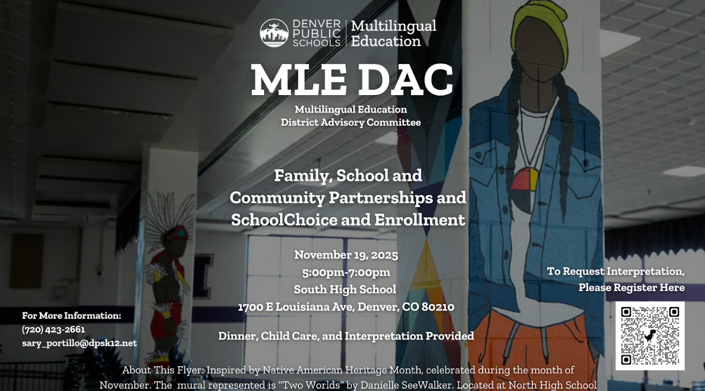 We invite you to join us for the November Multilingual Education District Advisory Committee (MLE DAC) meeting.