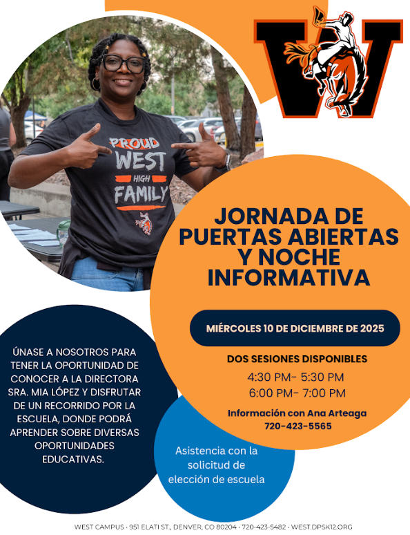 Acompáñanos el 6 de noviembre a las 4:30 y 6:00 PM para conocer nuestros programas, al personal y lo que hace a West tan especial.
